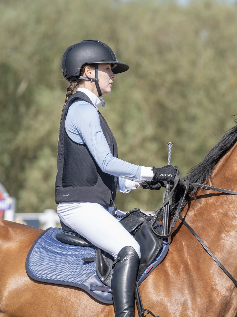 Heat wise, I did feel a bit hotter than usual when competing in the air jacket, spending all day in it you tend to be able to test it pretty thoroughly during the August heat. This being said, I wasn't uncomfortably hot, there was only a small increase in how hot I felt when competing in the air jacket compared to competing without- after all it is an extra layer of clothing - similar to wearing your show jacket.