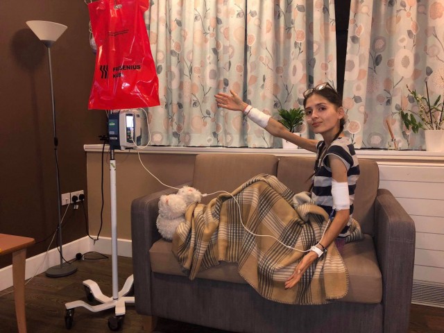 Feeling utterly terrified but also so grateful. A huge milestone passed as I've officially began Parenteral Nutrition since having my PICC line placed earlier this week. (The solution bag has to be kept under the red bag to protect it from daylight due to how sensitive it is.)Tonight I've managed to sneak away from my hospital room to the patient day room which is a nice change- it's not home but it's better than the same four walls!
